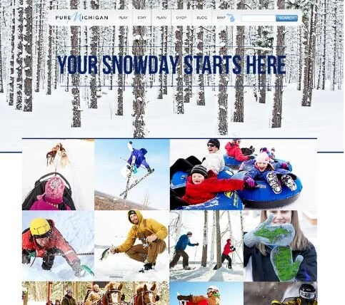 This standalone website for Pure Michigan was dedicated entirely to showcasing winter experiences. Traffic was driven through interactive advertisements on WeatherChannel.com, multiple visitor bureaus, and winter attraction websites.